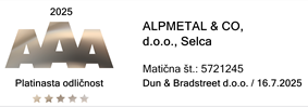 Alpmetal & Co ima dolgoletno tradicijo pri zagotavljanju najvišje kakovosti izdelkov in procesov. Kakovost obvladujemo skladno s smernicami veljavnih verzij standardov ISO 9001, IATF 16949 in dodatnimi posebnimi zahtevami naših strank.